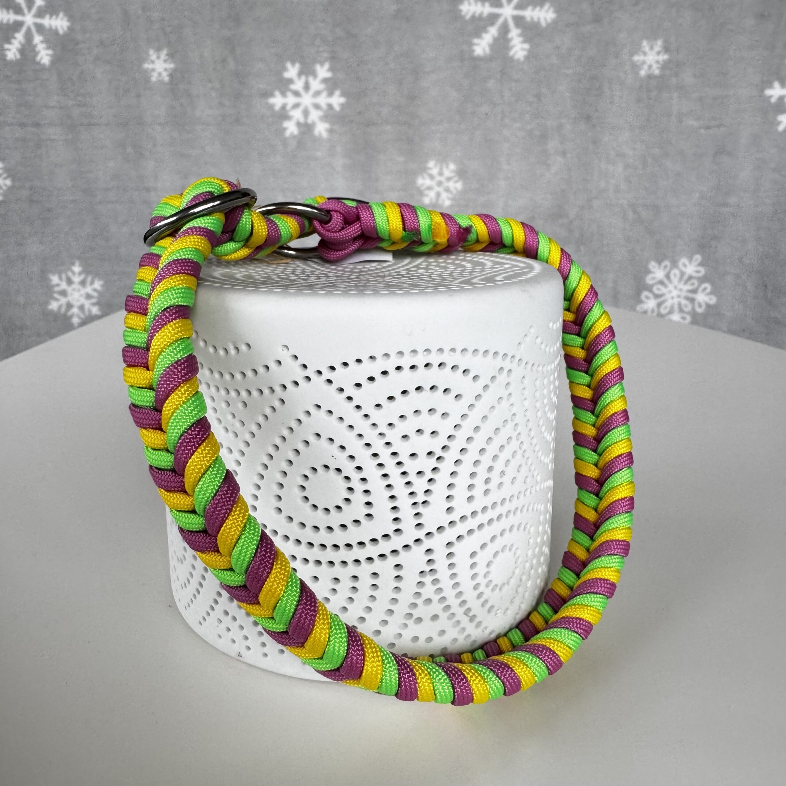 Realizzato in paracord, con moschettoni e anelli in acciaio.