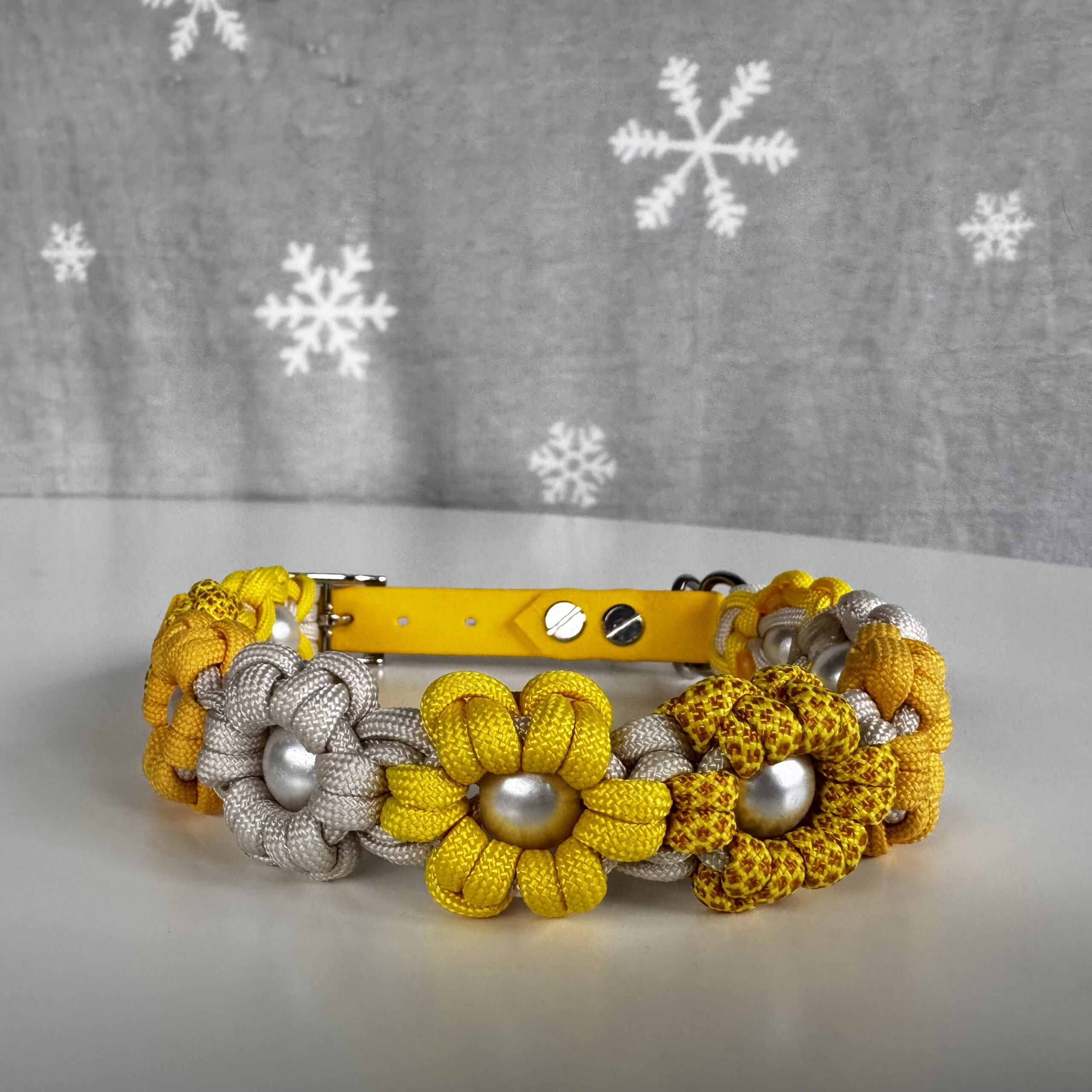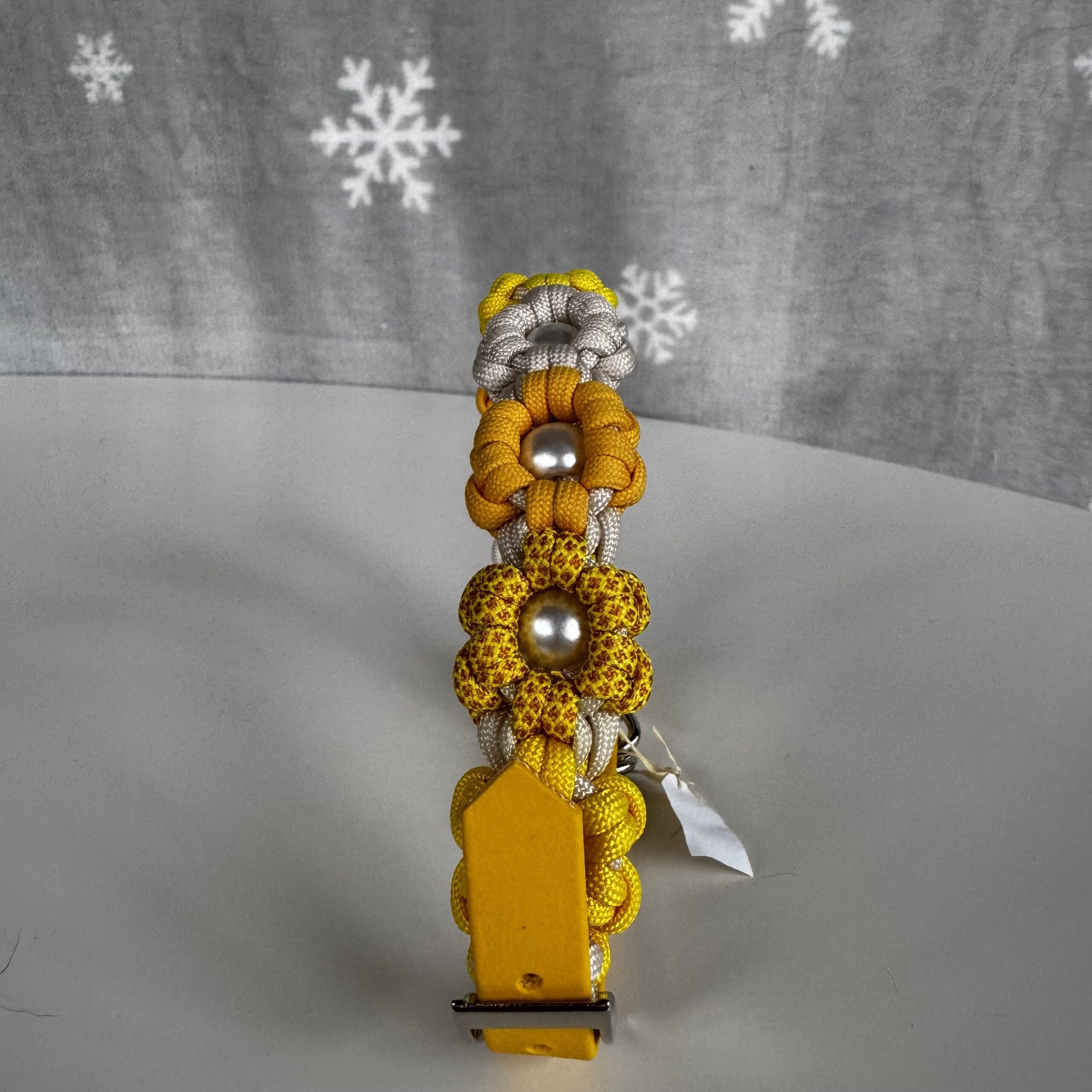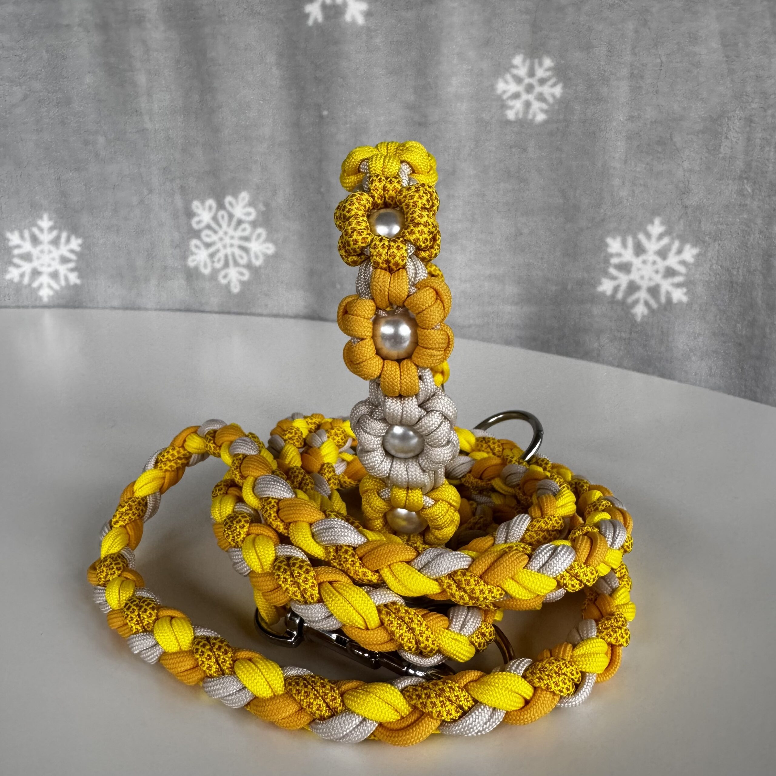 Realizzato in paracord, con moschettoni e anelli in acciaio. Chiusura regolabile in BioThane.