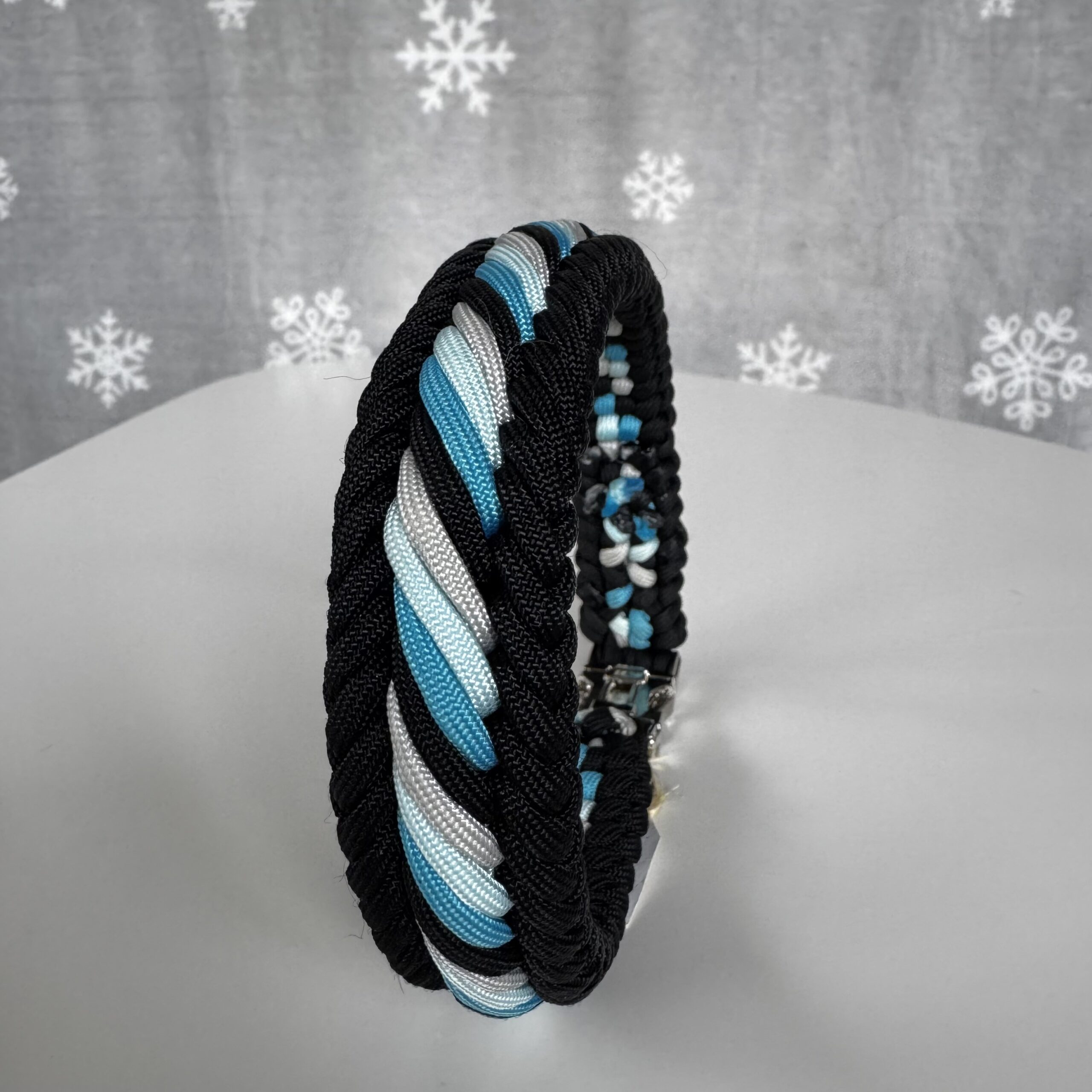 Realizzato in paracord, con moschettoni e anelli in acciaio.