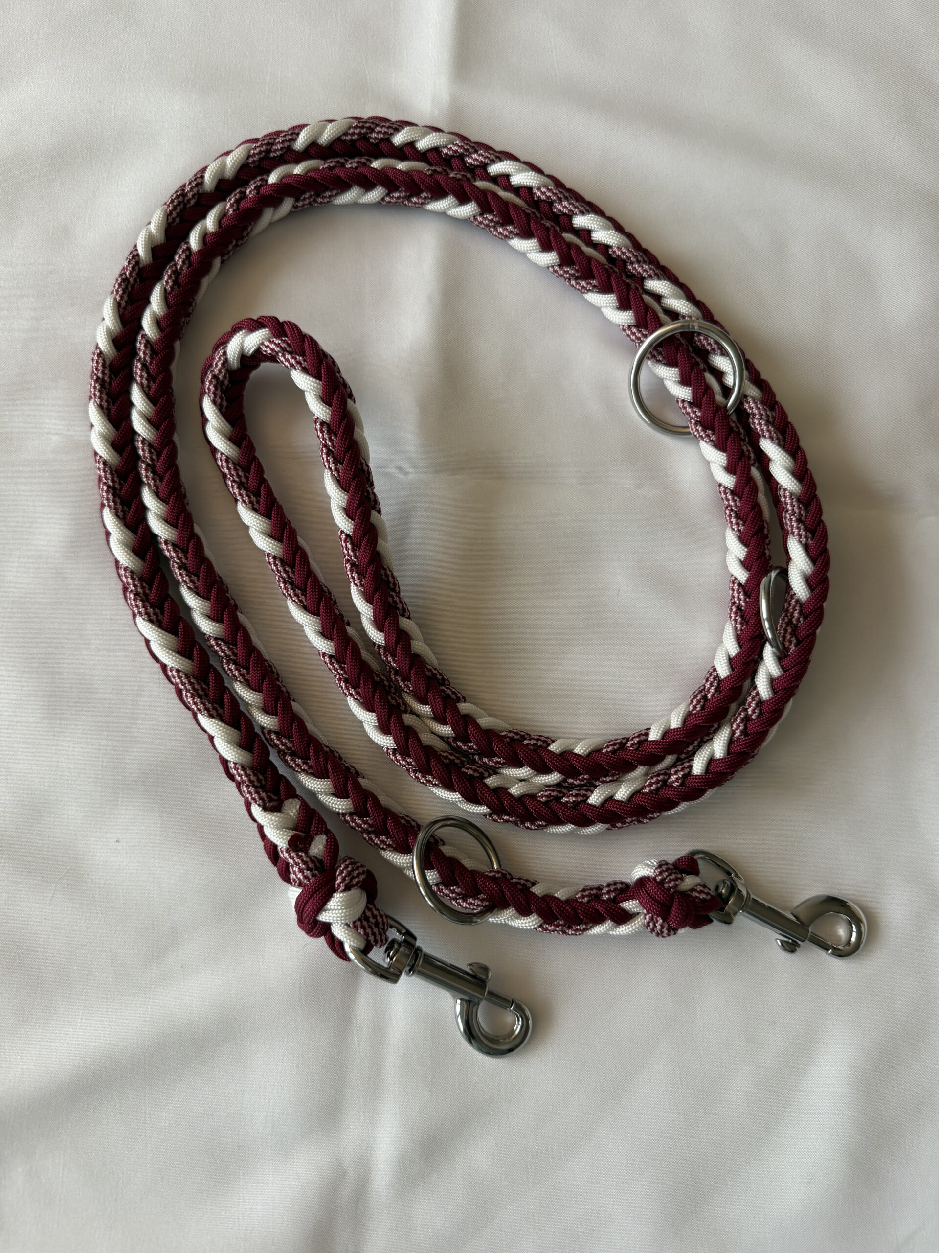 Realizzato in paracord, con moschettoni e anelli in acciaio.