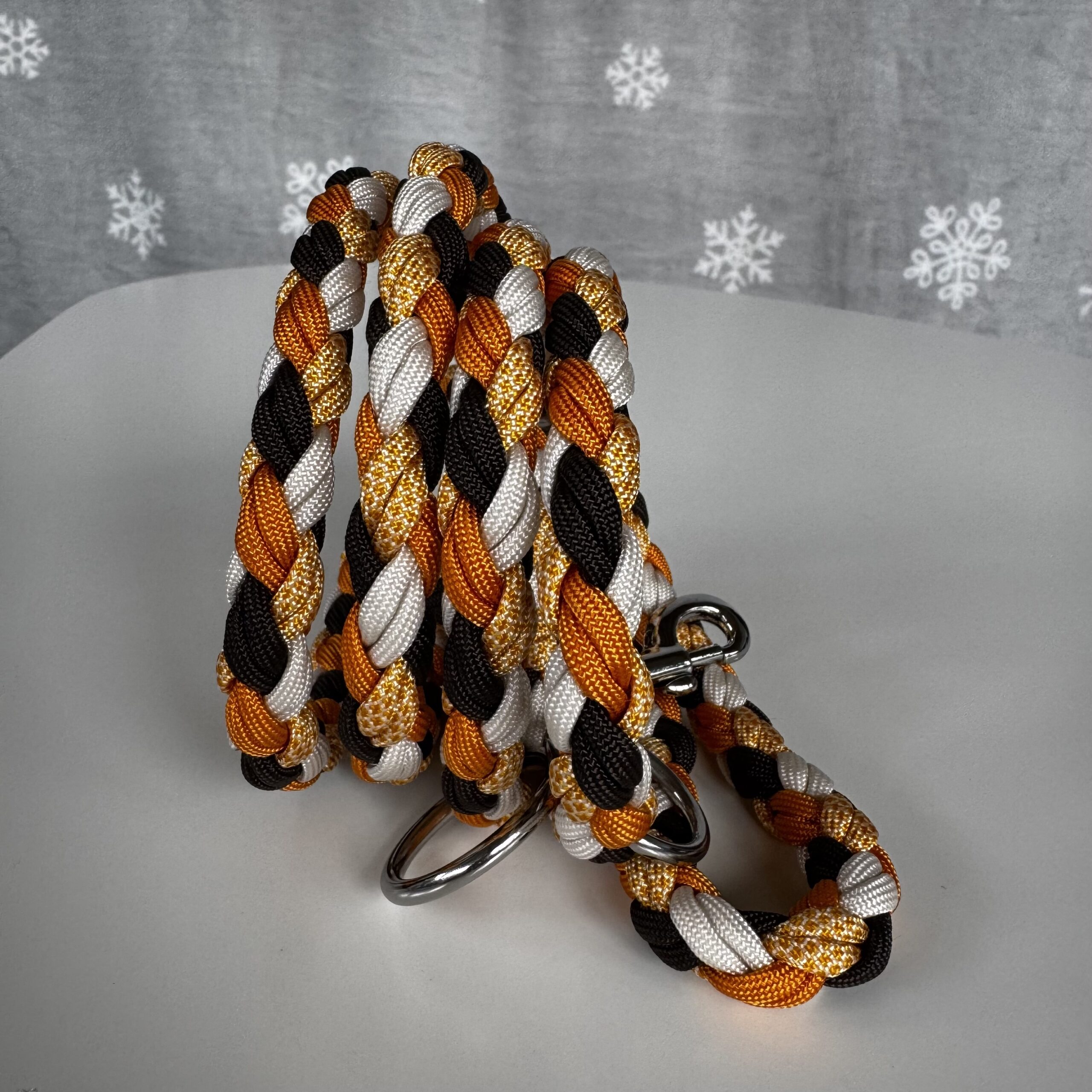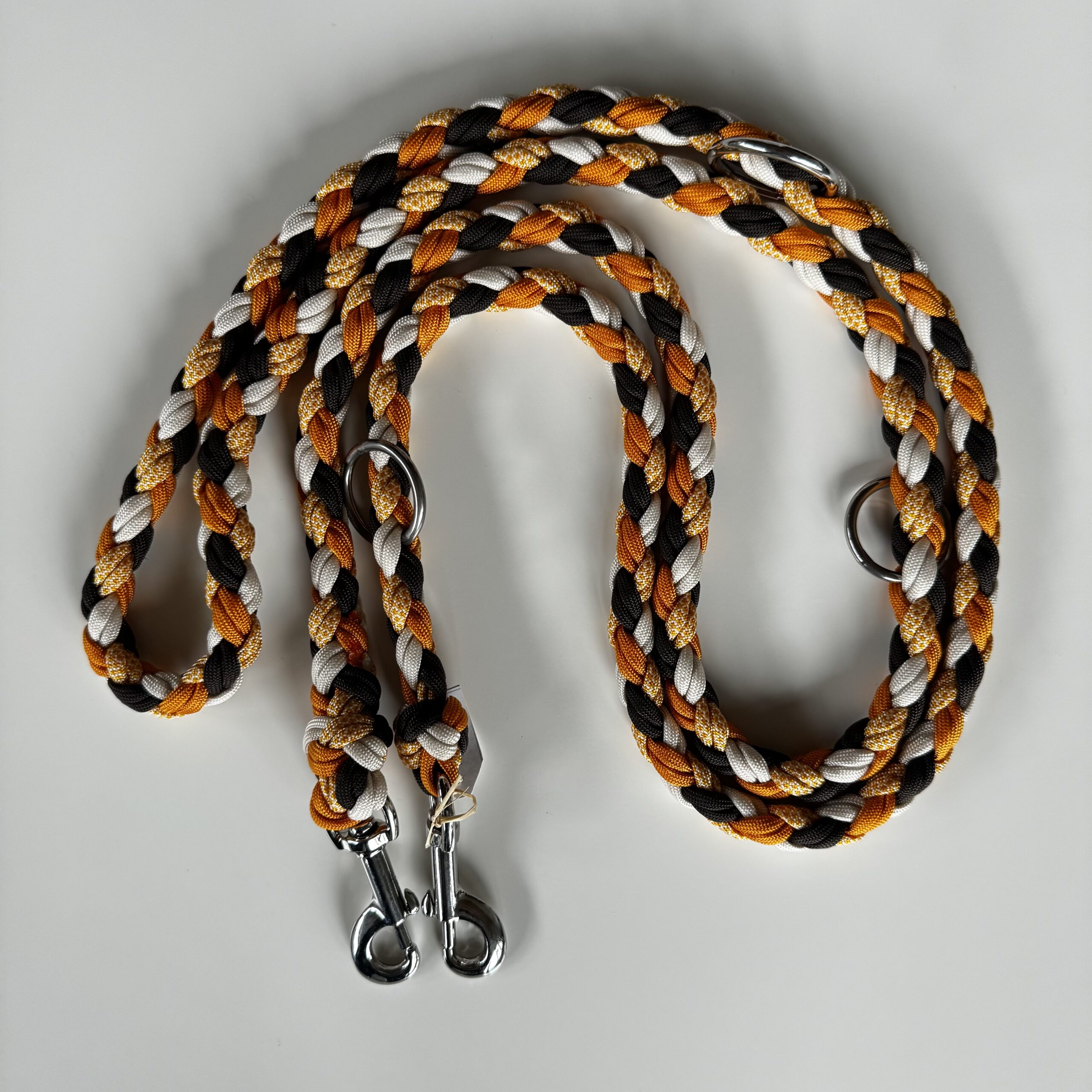 Realizzato in paracord, con moschettoni e anelli in acciaio.