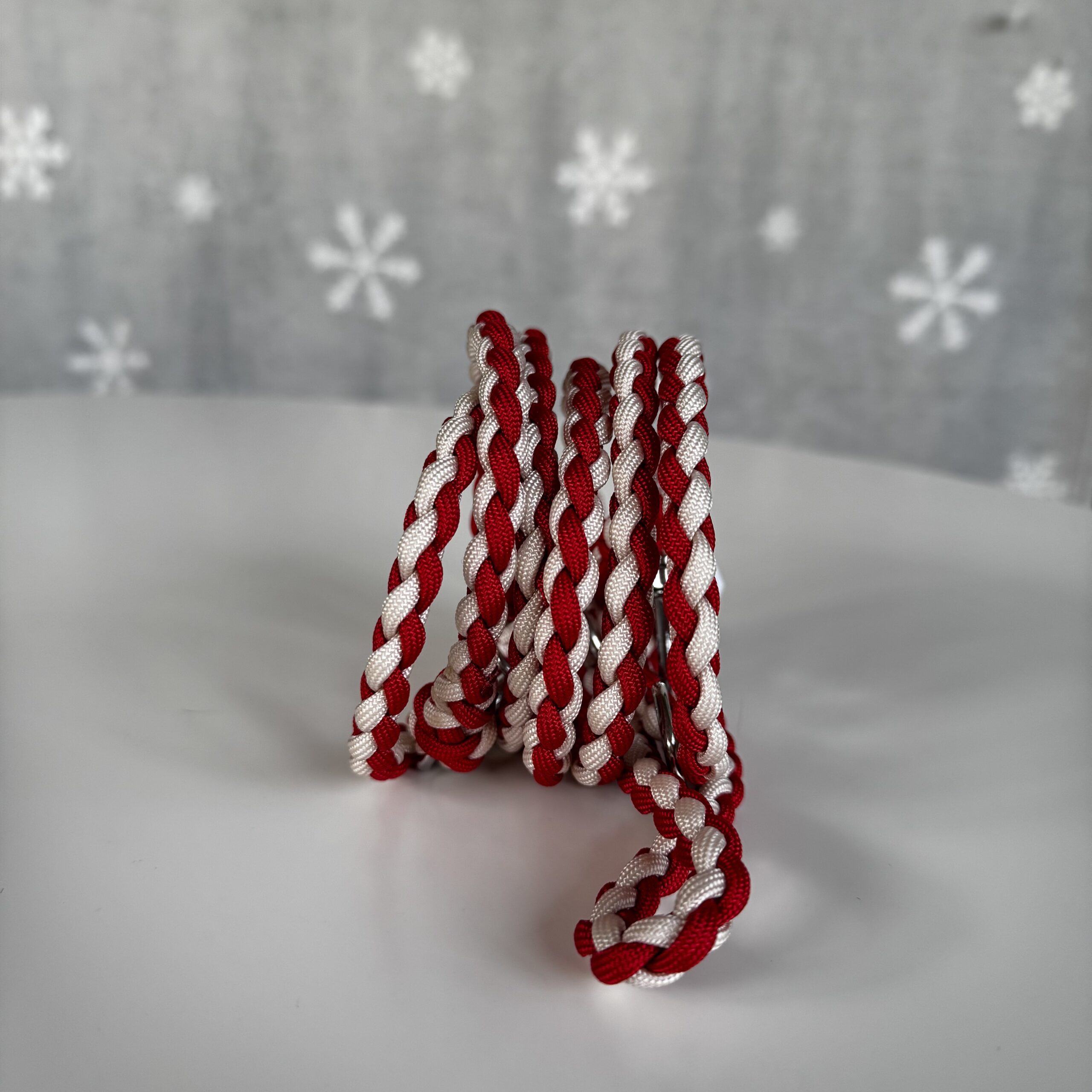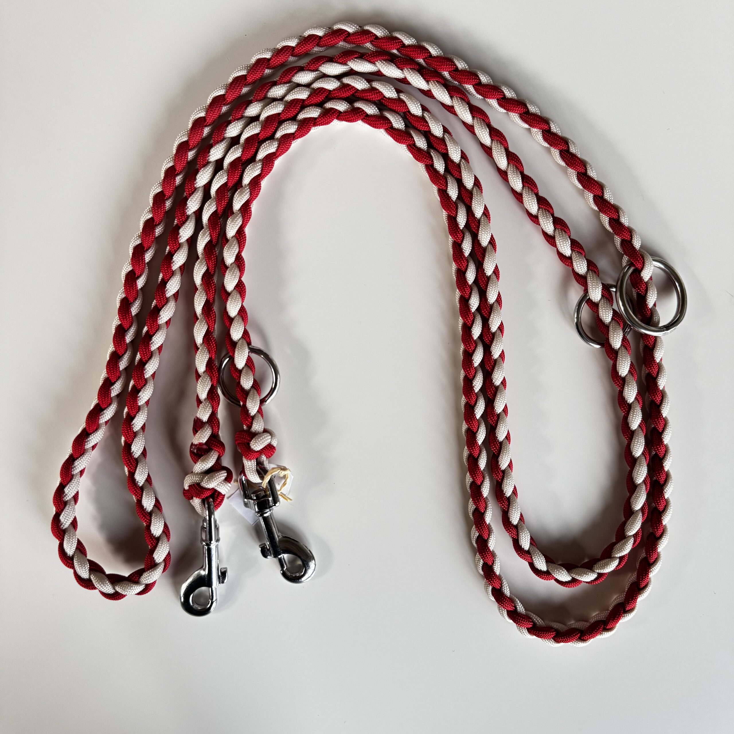 Realizzato in paracord, con moschettoni e anelli in acciaio.