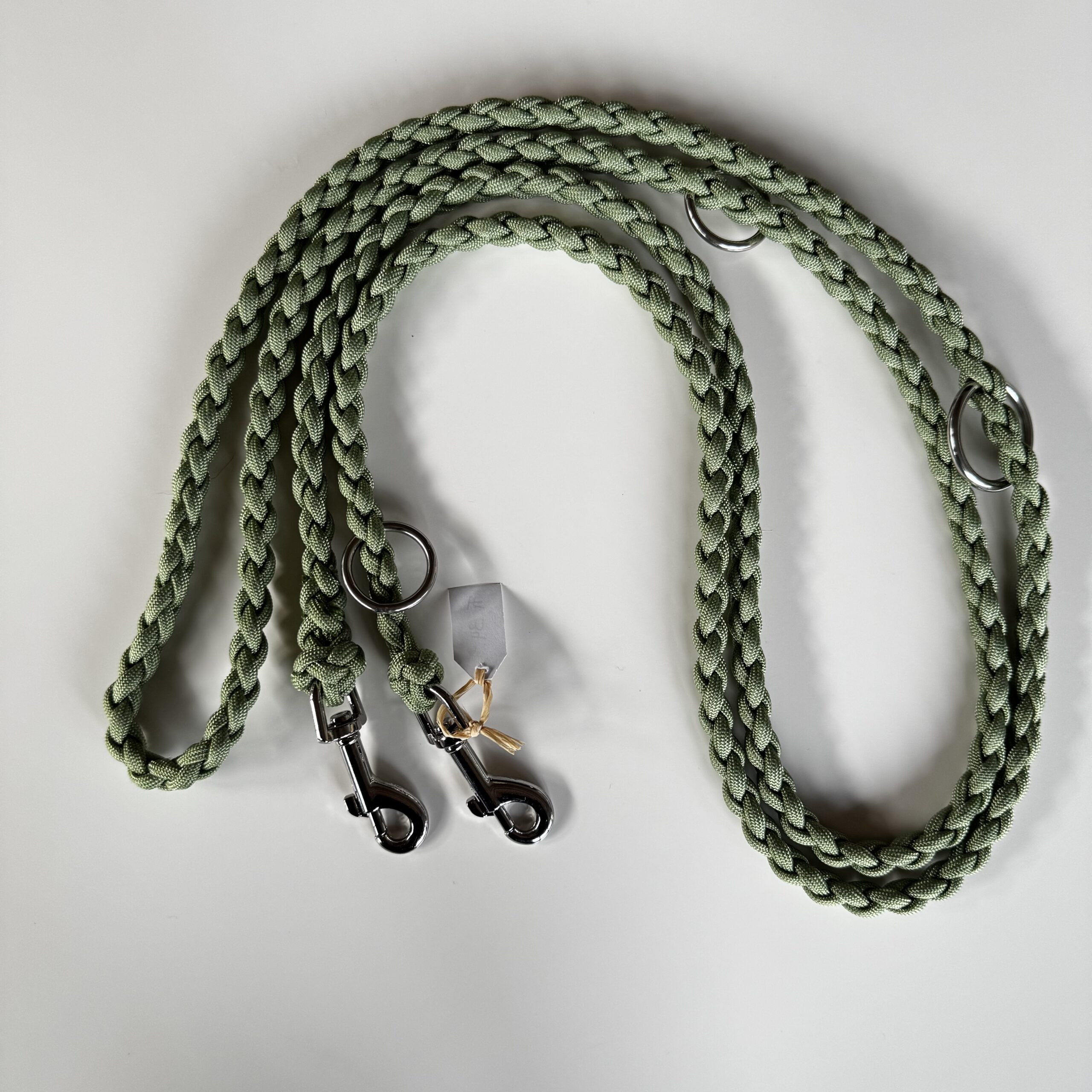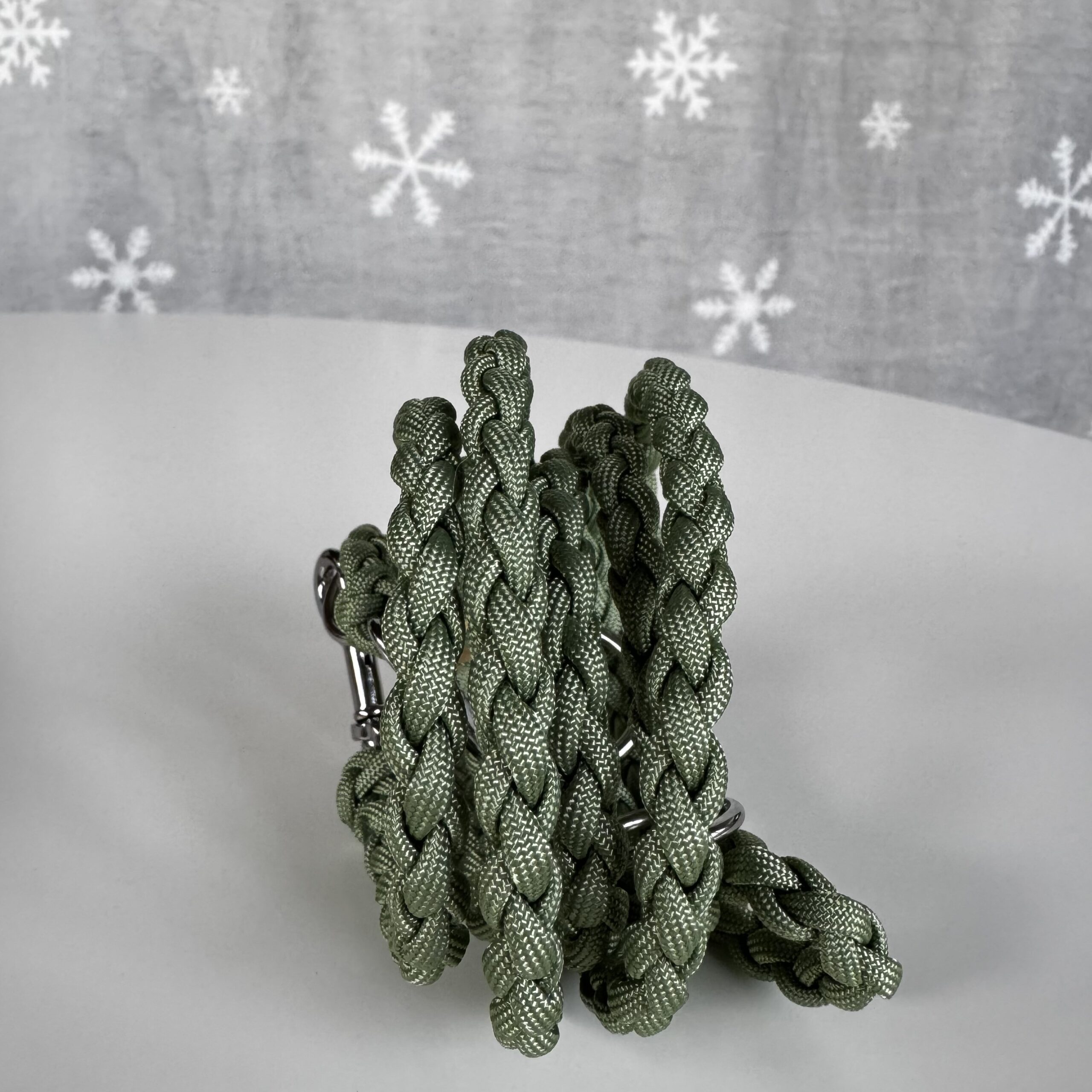 Realizzato in paracord, con moschettoni e anelli in acciaio.