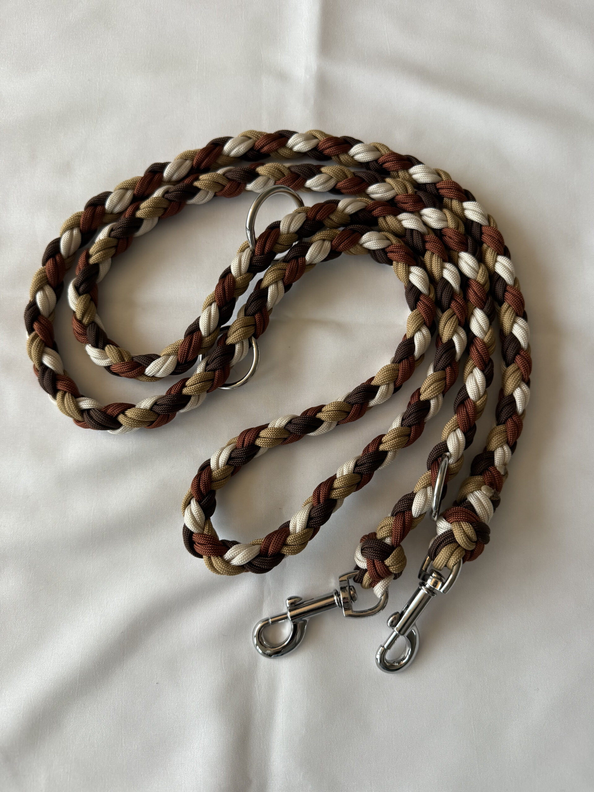 Realizzato in paracord, con moschettoni e anelli in acciaio.